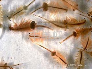 其它应用:作为水产苗种内服药的活体胶囊鱼虾幼体因微生传染而引起 对生产威胁很大。利用卤虫作为活载体,以强化技术加入药物或疫苗,使其填载到卤虫肠道内,鱼虾幼体喜食卤虫,药物被直接带进鱼虾体内,起到了防病治病的效果。